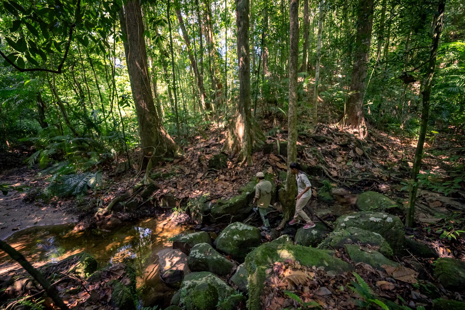 The forest is known for its dense vegetation and remarkable biodiversity, with plant species such as rattan, strangling figs, and lianas commonly found along the trail. Enjoy the sight of towering trees, wildflowers, flowing streams, and fresh jungle air. A stop will be made at a beautiful deep flowing stream, offering a chance to rest, refresh, and enjoy the surroundings before continuing the journey.